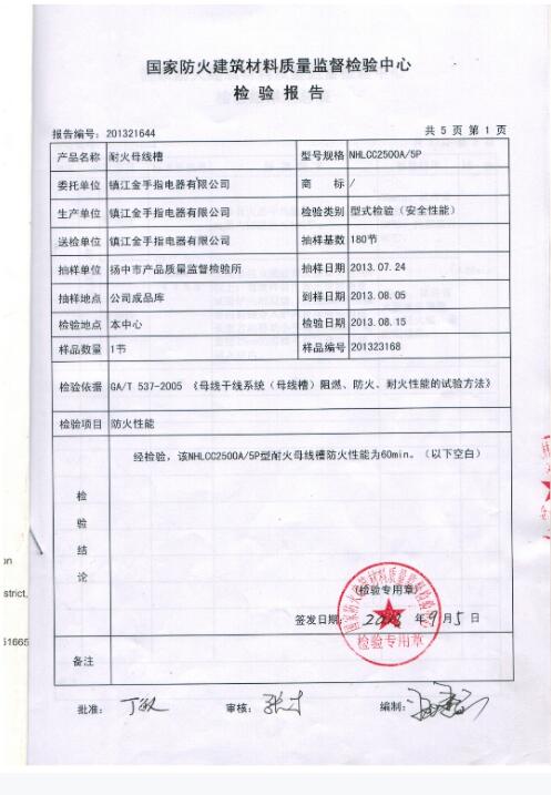 耐火母線(xiàn)槽 檢驗(yàn)報(bào)告