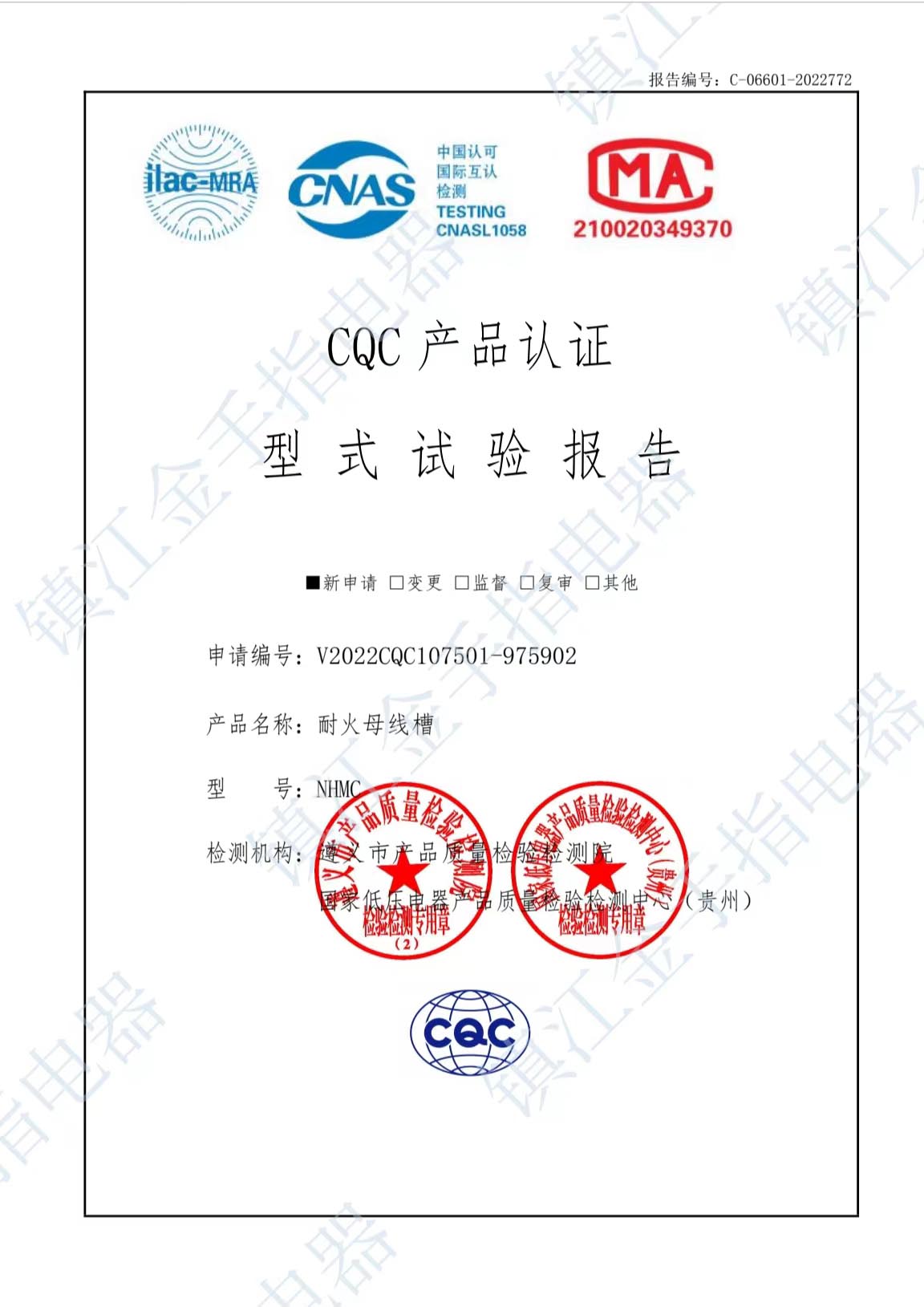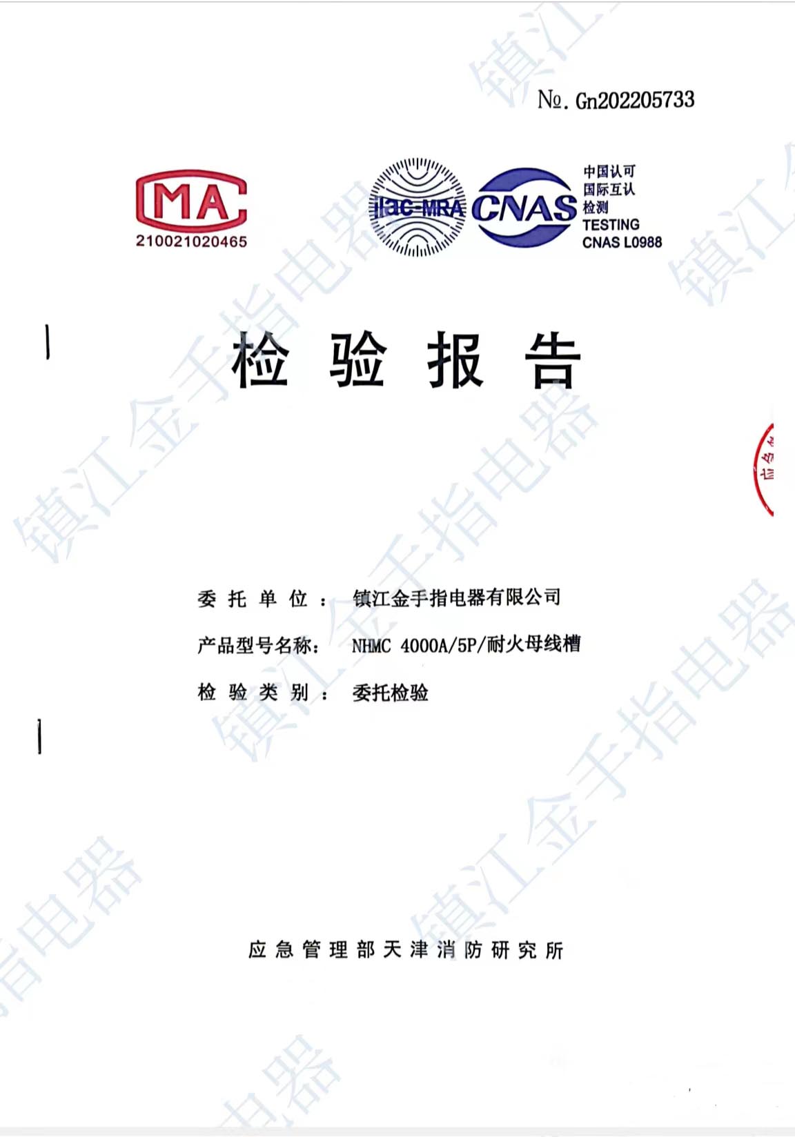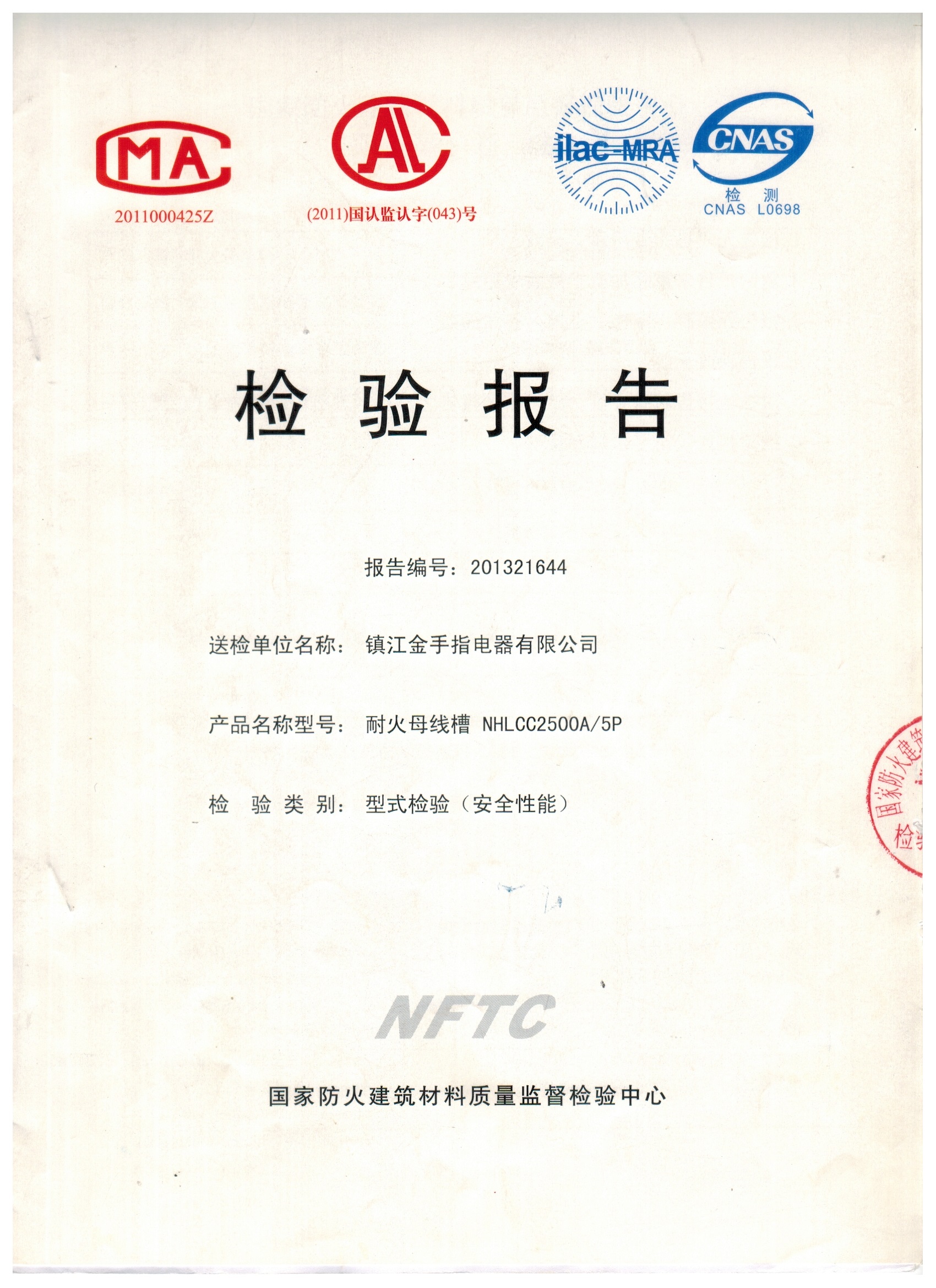 耐火母線槽 檢驗(yàn)報(bào)告